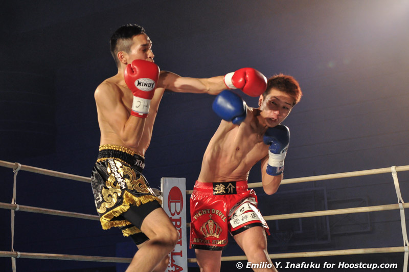体格差のあるTAROが、遠い間合いからロー、ミドルを中心に追い込み、KINGが足をつかって細かいパンチを当てる展開。かいくぐりクロスからコンビネーションをつなげるKINGだが、TAROも打ち終わりにリーチを生かしたストレートを合わせ追随を許さない。最終ラウンド、激しいラリーが続くものの実力者同士決定打の無いまま最終ゴングで引き分け。軽量級ならではのスピードと関西軽量級トップファイターによるレベルの高い試合であった。