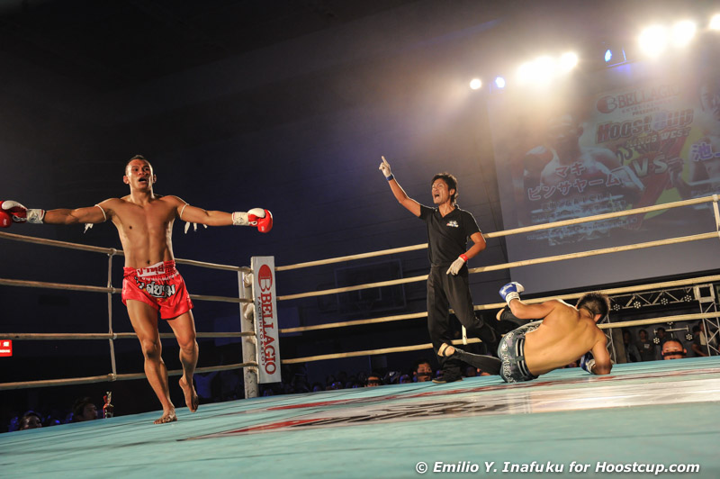 延長R、撃ち合いに自信をもったかのように前に出始めた池上にこたえるように的確に攻撃を続けるピンサヤーム。両者の激しい打ち合いが続く。中盤離れ際でバランスを崩したのを見逃さないピンサヤームが、池上の横顔に叩きつけるような右ストレートでダウンを奪う。立ち上がり取り返そうとする池上に対し、前蹴り、崩しで逃げ切るピンサヤームの勝利。終了ゴングで讃えあう両者―。ダウンを奪ったピンサヤームの勝利。日本人トップファイターをまたも退ける。