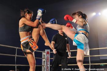 谷山は女子空手世界王者の風格で道着でリングイン。マエリーはムエタイ選手らしく笑顔で迎える。右ミドルからの右ストレートでペースをつかみたいマエリーだが、谷山はフットワークの遠い間合いから前蹴り、ミドルからのストレートのコンビネーションをおいてのヒット&アウェーで追随を許さない。パンチを嫌がりだしたマエリーのクリンチに疲れの見えた谷山だが、気合とともにたたみ掛け、勝利をもぎとる。