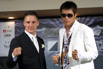 ▼ (8/9 up) 次の7試合が決定した。日本人選手は9日、東京全日空ホテルの記者会見に勢揃いした。