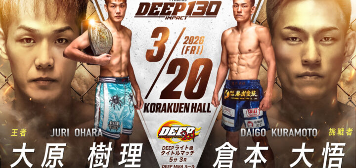 Push / ニュース 2026-01-14 by BOUTREVIEW · Published 2026-01-14 · Last modified 2026-01-15 DEEP 3.20 後楽園ホール:ライト級暫定王者の大原樹理にDEEP 7連勝の倉本大悟が挑戦。嶋田伊吹、因縁のストラッサー起一とウェルター級王座防衛戦