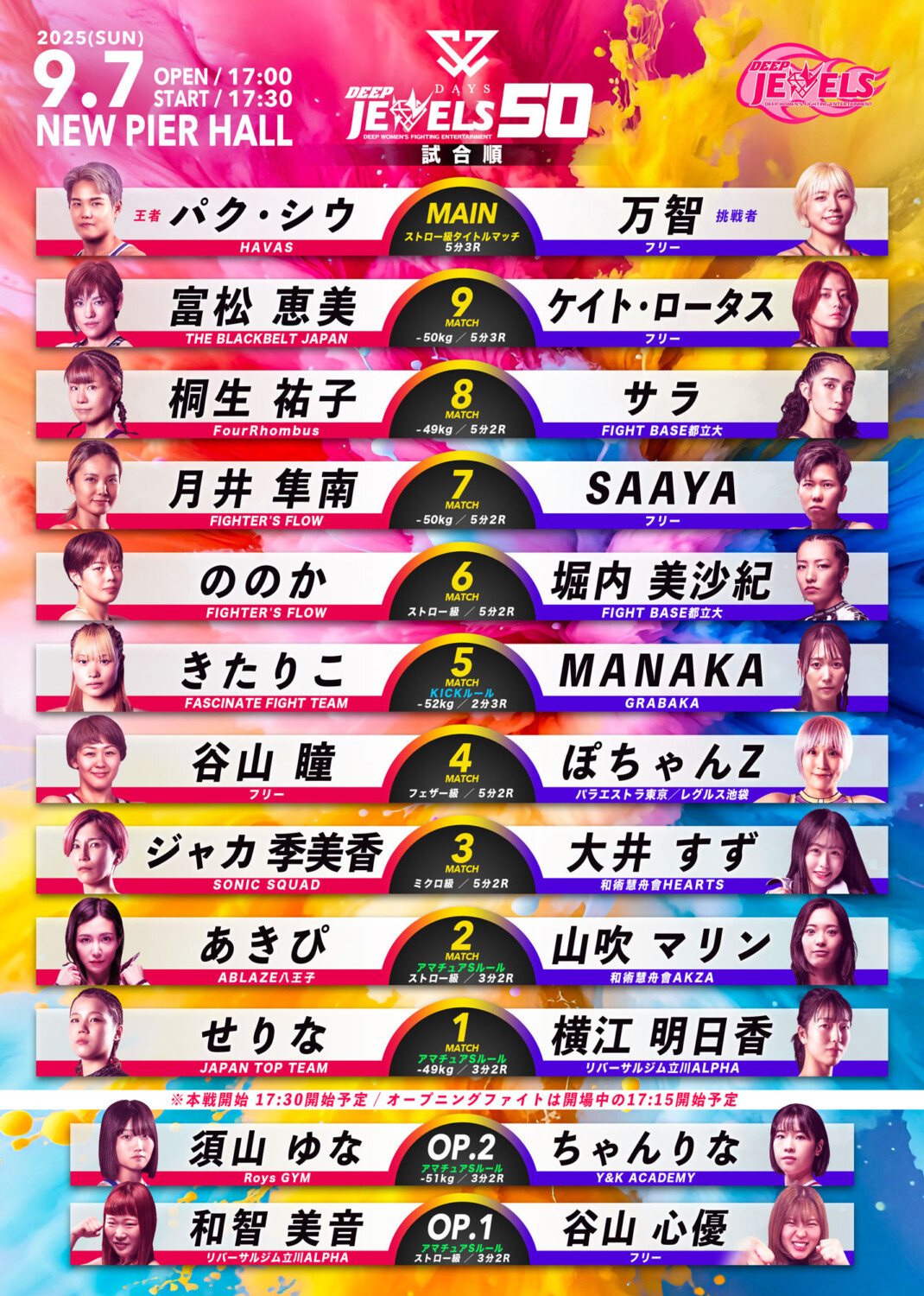 日時 2025年9月7日(日)開場・17:00 オープニングファイト開始・17:15 本戦開始・17:30