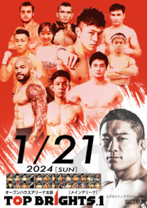 TOPBRIGHTS(トップブライツ)は「UFCやベラトールのような海外の有名団体で勝てる日本人を出したい」とい思いから堀口恭司がスタートする大会で、5月に旗揚げが発表され、堀口の故郷・群馬で旗揚げ大会が行われる。試合場はケージ。MMAはUFC等と同じ米国統一ルールの準じたルールを採用。「TOPBRIGHTS育成枠」と題した、若手選手主体の3分3RのMMAルールの試合が大半を占めるが、MMAとムエタイで既に海外で活躍している国内トップ選手によるカードも組まれ、今回2試合が発表された。
