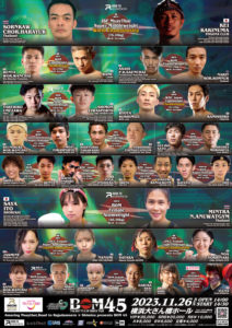BOM 11.26 横浜大さん橋ホール:朝陽・PKセンチャイムエタイジム「実力のある選手とタイのリングでやっていきたい」、柿沼慶「亡くなったパンペット選手との一戦を忘れないためにタトゥを入れた」