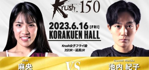 K-1女子アトム級王者でもある菅原美優がKrush同級王座を返上し、山田真子×松谷綺で第4代王者決定戦が組まれたが、山田が負傷欠場し、代わって奥脇が王座戦に臨む。