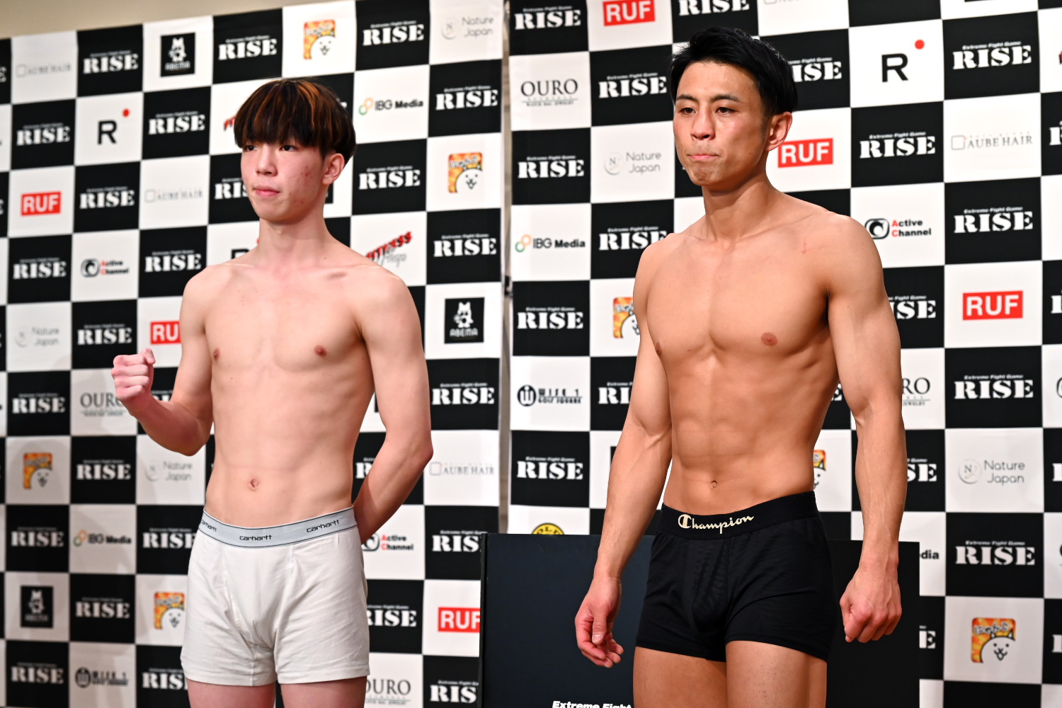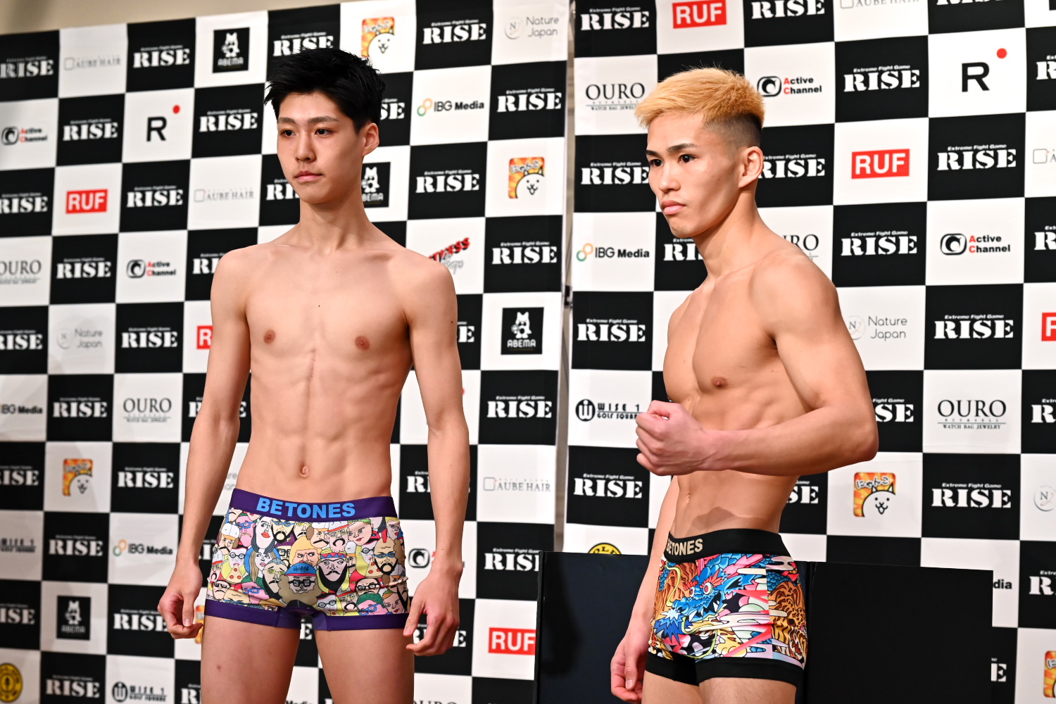 明日は24年一発目のRISEで、自分の試合にします。前の試合から期間が無かったんですけど、進化した姿を見せます。(相手の印象)身長は思ってたよりもデカかったです。スタイルも良くて。でも骨折れそうやなって。ヒョロヒョロなんで。映像を見たらボクシングが上手くて距離を取るんですけど、あの感じやと入れる感じです。明日は入場のダンスの時間の方が長いと思うんで楽しんでください。