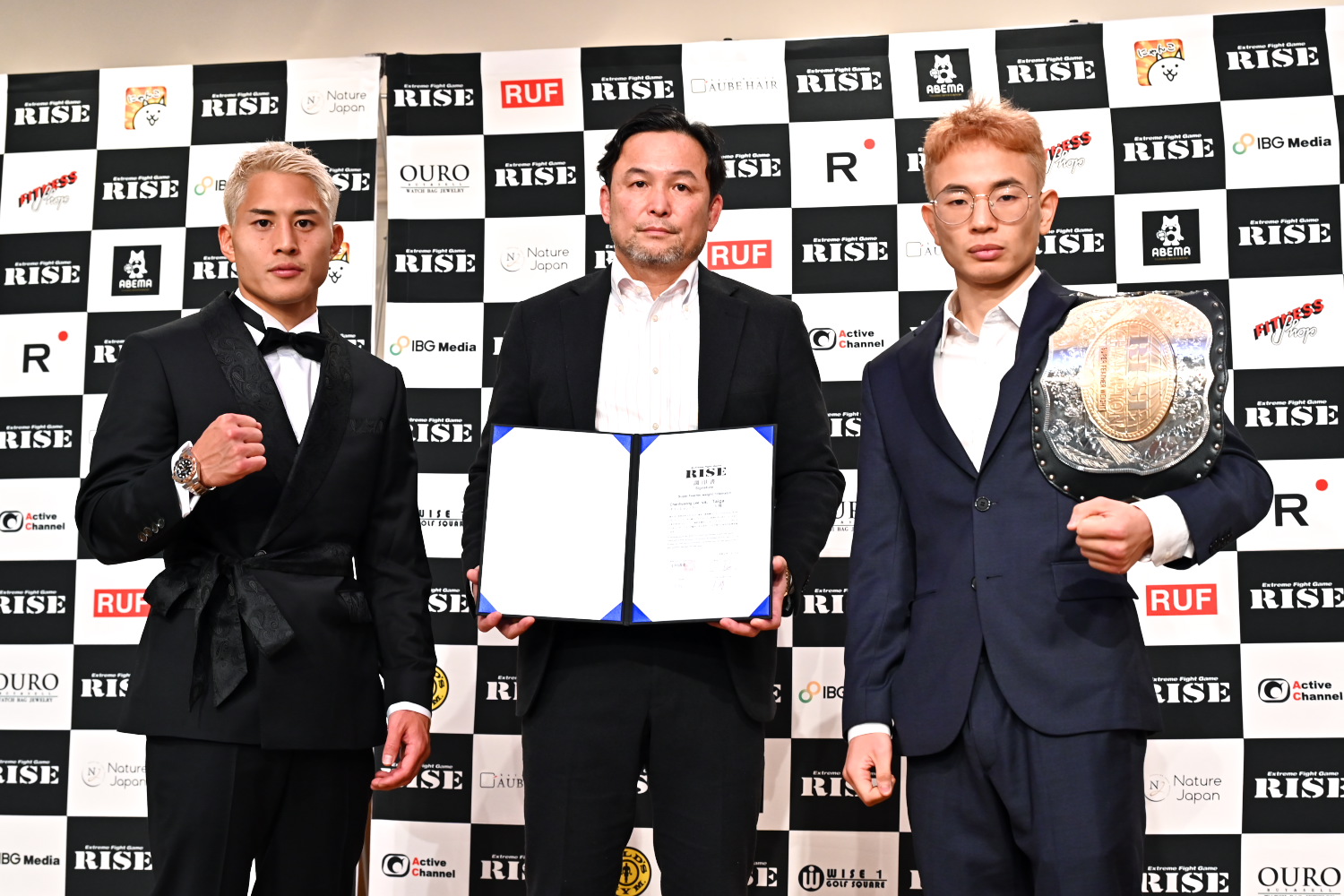 RISE 175(1月14日(日)後楽園ホール)の公式計量が13日、東京で行われ、全選手がクリアした。メインイベントのRISEスーパーフェザー級タイトルマッチ・チャンヒョン・リー(王者)vs. 大雅(挑戦者)の調印式も行われた。