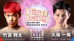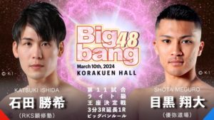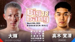 Bigbang 3.10 後楽園ホール:大輝、2階級上のミドル級で高木覚清と王座決定戦。石田勝希×Krush 4連勝の目黒翔大でライト級王座決定戦
