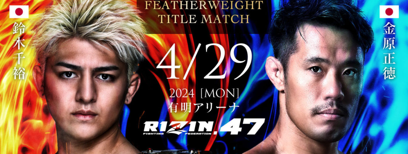RIZINフェザー級王座戦 鈴木千裕×金原正徳のRIZIN.47 5.6 有明アリーナ大会を4.29に開催日変更