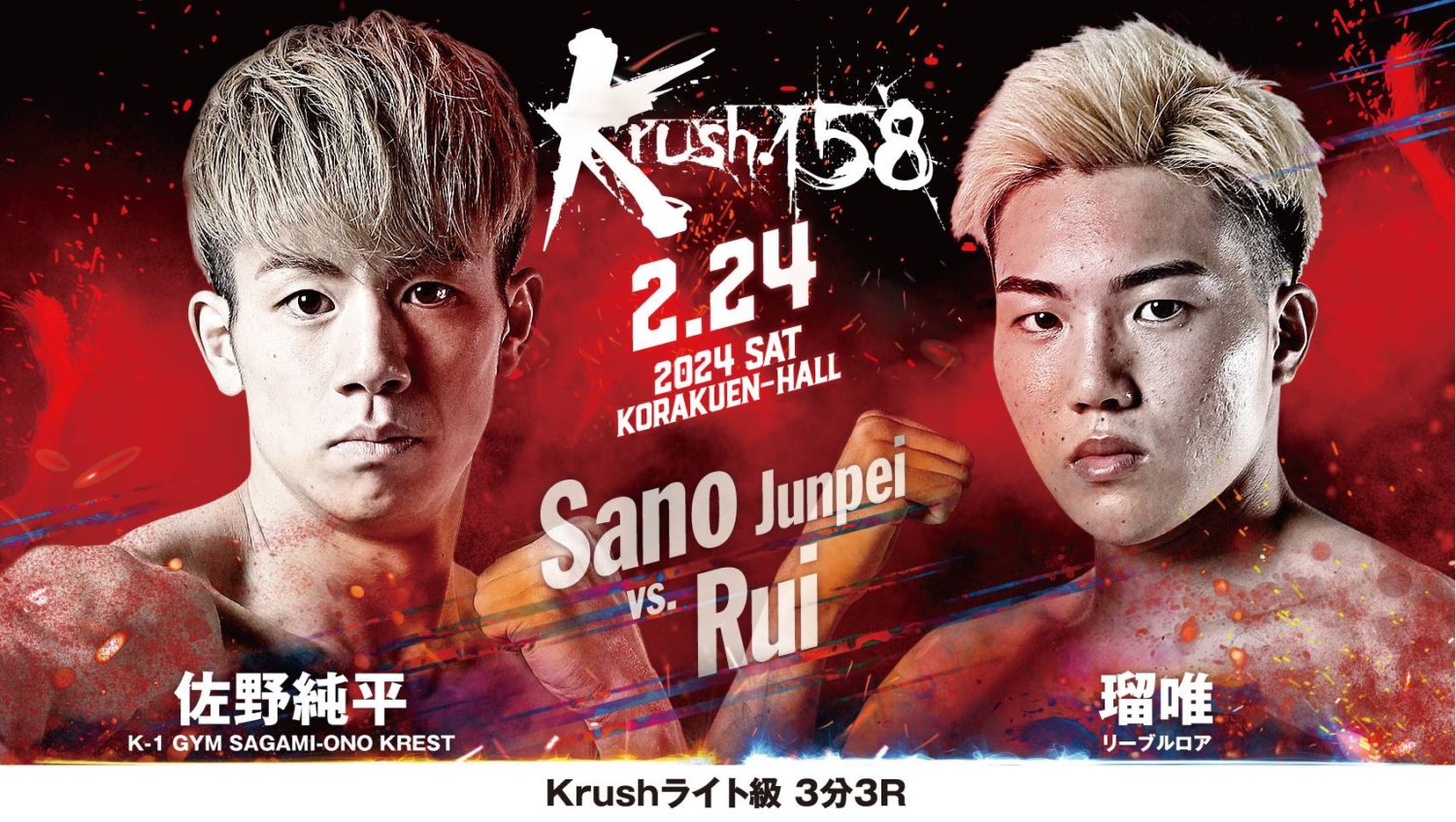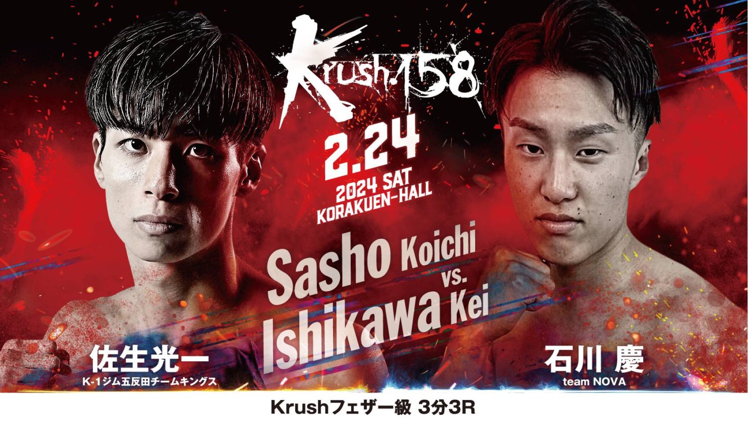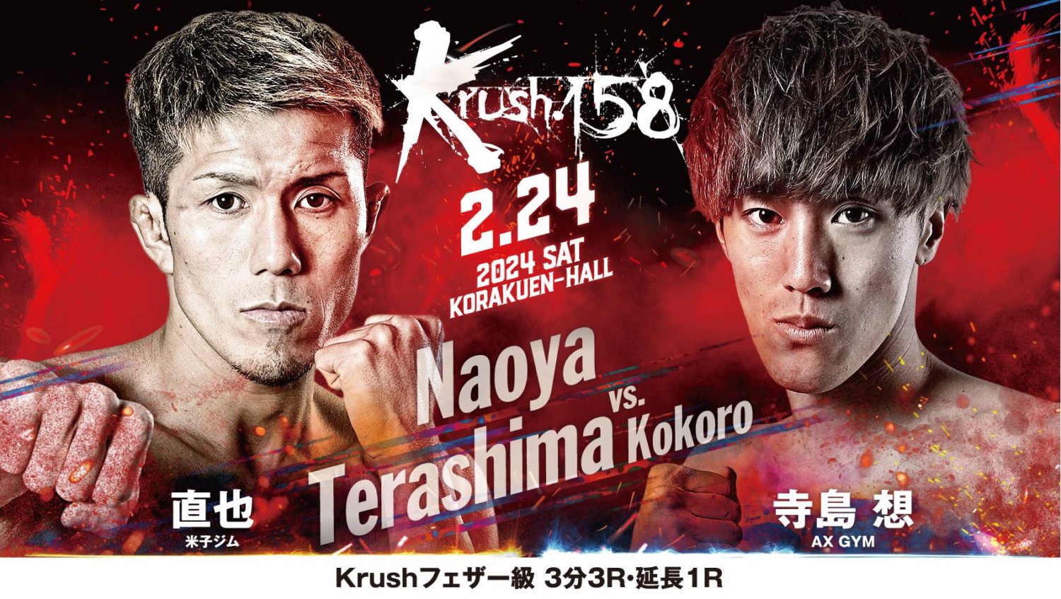 Krush.158(2月24日(土) 後楽園ホール)にフェザー級・竹内将生 vs. 石田龍大、同級・直也 vs. 寺島想ほかが追加された。