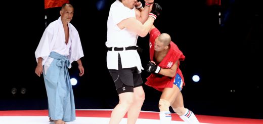 ・直径8メートルの土俵型の試合場から相手を1Rに3回落とせば「合わせ一本」となる。一緒に落ちた場合は転落と認められないが、攻撃性が伴えば「有効」と認めらる場合もあり、2度の有効で転落1回と同等となる。