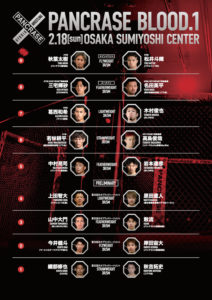 PANCRASE BLOOD.1(2月18日(日)大阪・住吉区民センター 大ホール)の全カードと試合順が発表された。ランカー対決を主体とした通常ワンマッチ5試合に加え、大会前半にはパンクラスの新人王トーナメント「ネオブラッドトーナメント」のうち一回戦の4試合が行われる。関西勢主体のカードで、一回戦の残りの大半は翌週25日のPANCRASE BLOOD.2 東京・品川インターシティホール大会で行われる。