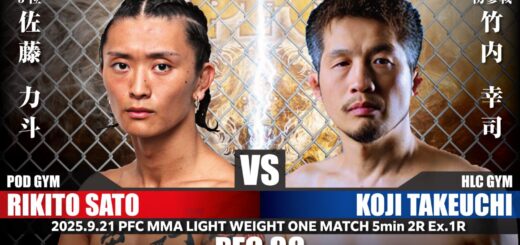 PFC 3.3 札幌 PODアリーナ:渡部修斗、一夜限りのMMA復活。地元札幌の亀松寛都を相手にPFCバンタム級王座防衛戦