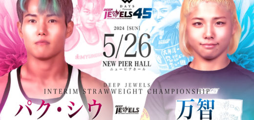 大島も古瀬戦以降は上の階級で戦い、昨年9月にパク・シユンに敗れDEEP JEWELSアトム級王座を失ったが、今年2月のRIZINではクレア・ロペスに一本勝ちしている。