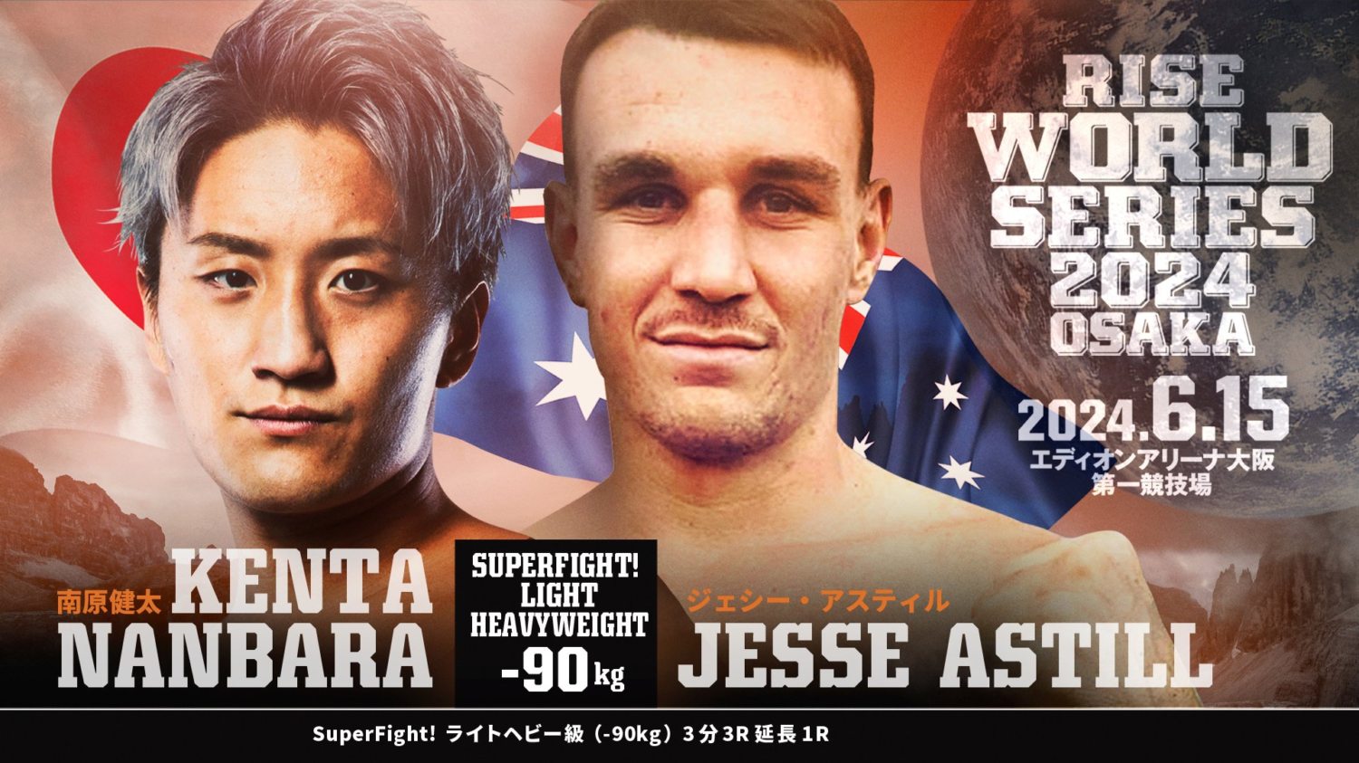 南原は10戦9勝(9KO)1敗の26歳(試合時)。昨年4月にカリュ・ギブレインに喫した黒星以外は全てKO勝利している。6月と8月の第2代RISEライトヘビー級王座決定トーナメントでは、入田和樹とコントゥアラーイをKOし王座獲得した。12月の両国大会ではGLORY推薦のビクター・デ・コニングを相手に1Rダウンを喫したが、延長に持ち込みKO勝ちしている。今回はチャド・コリンズの同門で初来日のアスティルと対戦する。