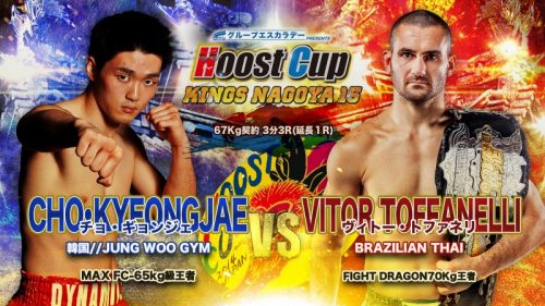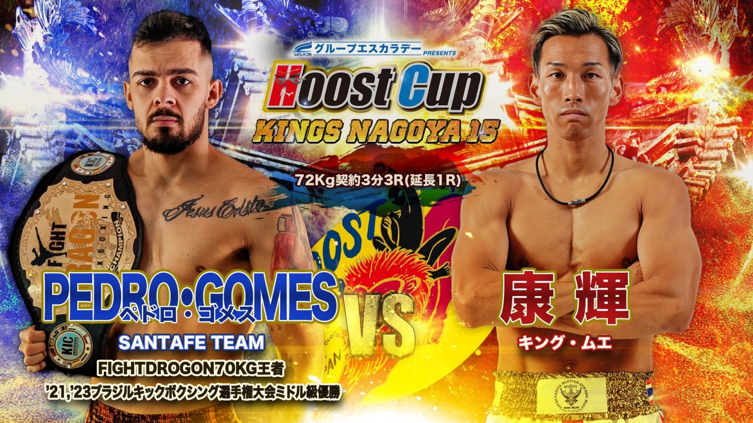 対する成尾は昨年3月のHOOST CUP日本ライト級王座決定トーナメントでは一回戦でDEEP☆KICK王者・大樹に惜敗するが、10月の京都大会ではHOOST CUPスーパーライト級でトップに位置する櫻井祐斗に飛び膝蹴りでKO勝利し、今年3月京都大会では王者・泰良拓也に1R KO勝利している。