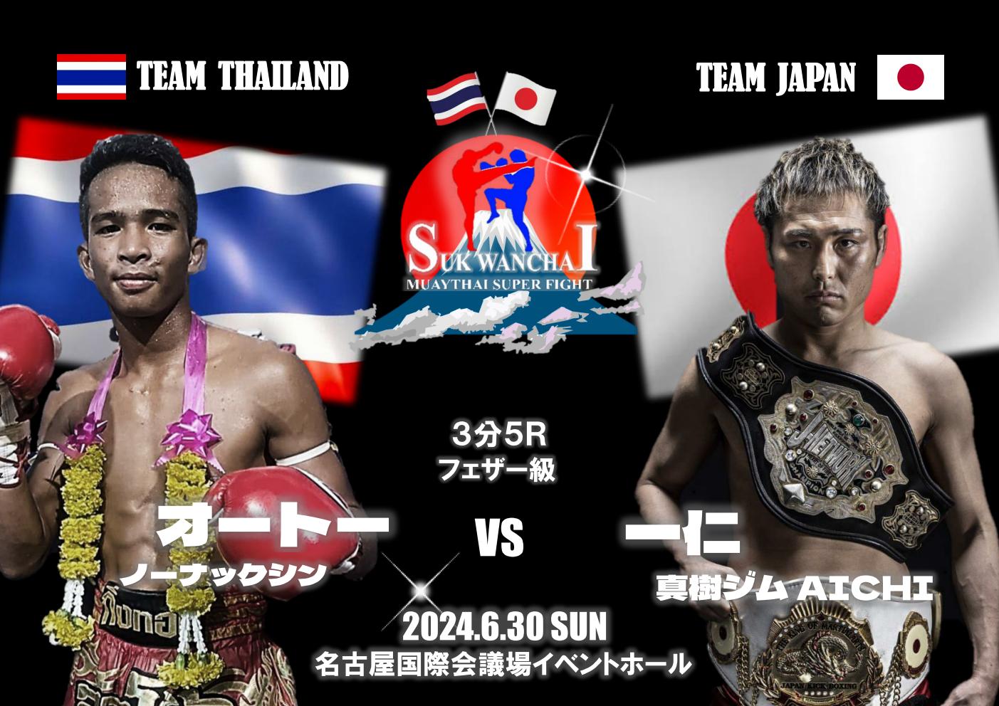 6月30日(日)名古屋国際会議場イベントホールで開催される「SukWanchai MuayThai Super Fight vol.10」に、ムエタイ日本人キラーとして名を馳せるオートー・ノーナクシン(タイ)が参戦、地元真樹ジムAICHIの元MA日本&J-NETWORK王者の一仁(かずひと)と対戦することが決定した。