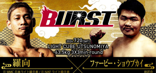 BURST 7.20 ライトキューブ宇都宮:ZERO主催大会で羅向・吏亜夢が揃い踏み。智也、地元の先輩の啓之輔を相手に引退試合。ミネルヴァ新設43.09kgのペーパー級で撫子×Uver∞miyU