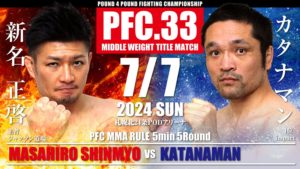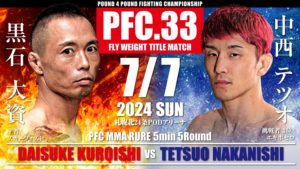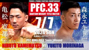 PFC.33 7月7日(日)札幌PODアリーナ大会が開催される。フライ級、バンタム級、ミドル級のタイトルマッチが行われる。