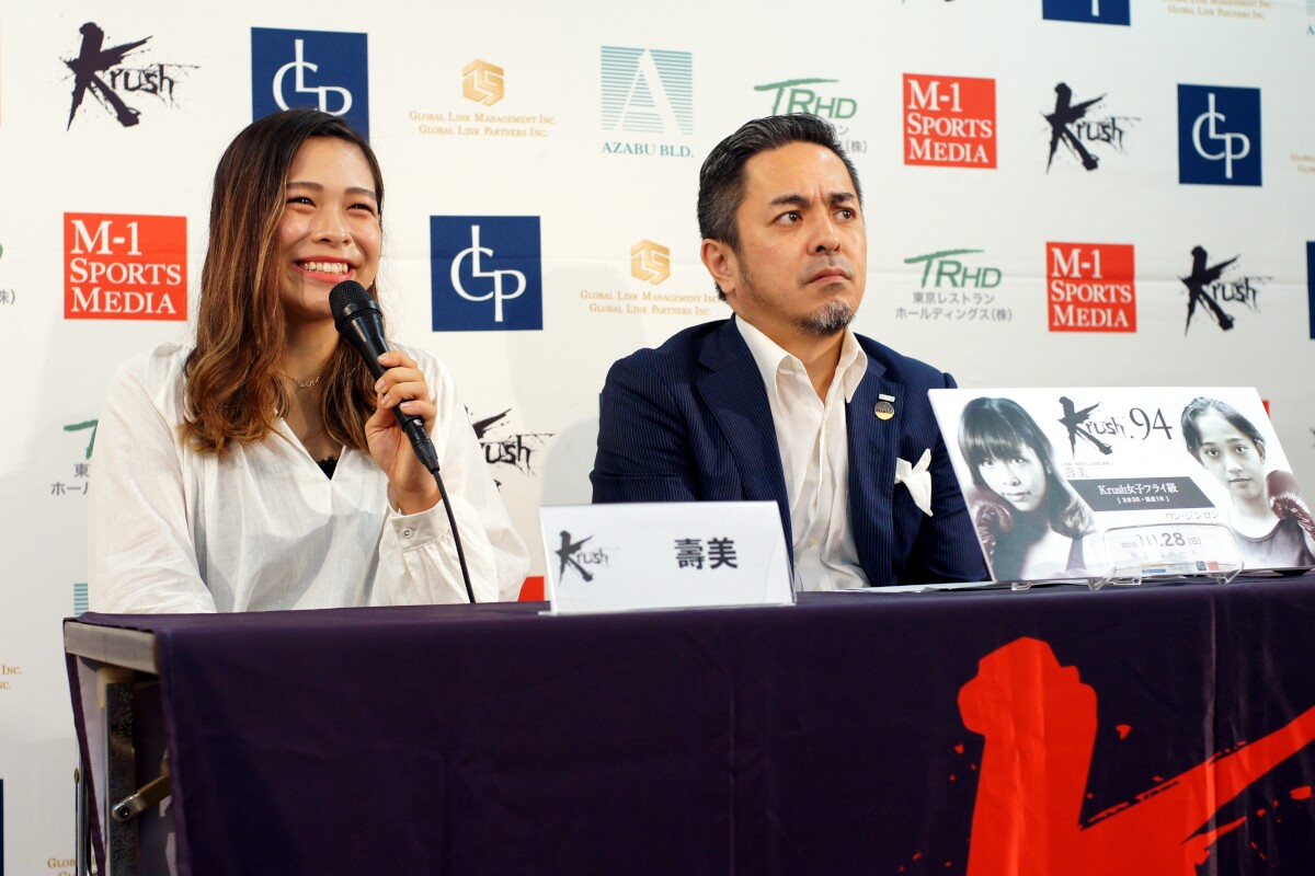 壽美はKHAOSで昨年10月にテキサス・アユミ、今年5月にRINAに勝利し、Krush初参戦。6戦4勝(2KO)2敗の22歳で、身長164cmのサウスポーだ。対するワン・ジンロンは12戦8勝(1KO)4敗の18歳、身長167cm。かつてKrushでKANAとも戦ったキル・ビーと同じジムに所属し、キル・ビー同様にパンチを得意とするという。壽美は「5月のKHAOSから開いたんですけど、いつでも試合できるよう練習していました。自分の良さは気持ちの強さだと思うので、アグレッシブに打ち合いたいです。相手はパンチ強いと聞きましたけど、無視してガンガン行きたいです。Krushの王者になるのが夢です」と話した。