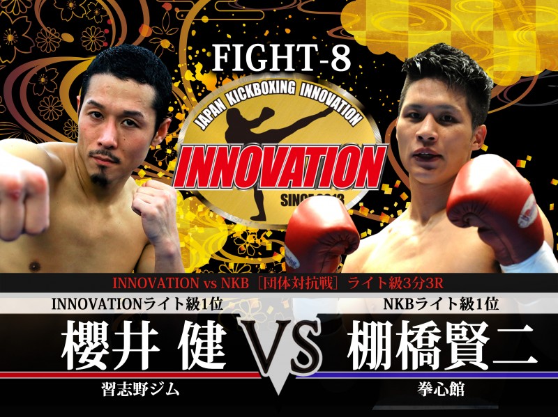INNOVATION「Join Forces-9」9月8日(土)新宿フェイス大会の3試合、62.5kg契約・翔・センチャイジム(センチャイムエタイジム/INNOVATION&WMC日本ライト級王者)vs. 長谷川健(RIKIX/WPMF日本ライト級王者)、ライト級・櫻井健(習志野ジム/INNOVATION 1位)vs. 棚橋賢二郎(拳心館/NKB 1位)、INNOVATIONウェルター級王座次期挑戦者決定戦・太聖(岡山ジム/1位)vs. 番長兇侍(習志野ジム/3位)の6選手のインタビューがINNOVATIONから届いた。