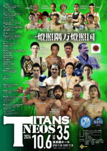 新日本キックボクシング協会「TITANS NEOS 35」(10月6日(日)後楽園ホール)の対戦カードが発表された。