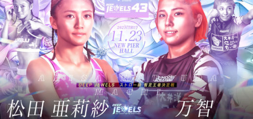 DEEP JEWELS 21(9月16日(日)新宿フェイス)の試合順が以下の通り決まった。メインイベントは前澤智 vs. パク・ジョンウン。7月に同じBRAVE所属の鈴木隼人と結婚式をあげた桐生祐子は「Yuko.S」にリングネームが変わっている。大会の模様は当日17時よりAbemaTV 格闘チャンネルで生中継される。解説は浅倉カンナ。大会前日の15日(土)14時よりドン・キホーテ新宿店(職安通り沿い)B1イベントスペースにて公開計量が行われる。