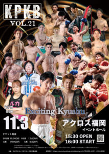 KPKB (九州プロキックボクシング)は2024年11月3日(日曜)アクロス福岡イベントホールにてKPKB vol.21を開催いたします。