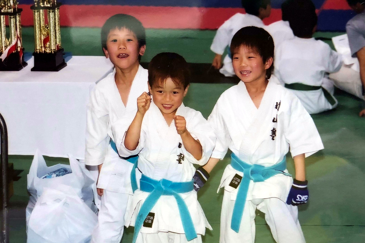 左写真 晴山塾時代。一番右が金子。中央が実弟の翼(現在ビクトリージムで活躍中の翼)、左はのちにK-1甲子園王者となる翔栄