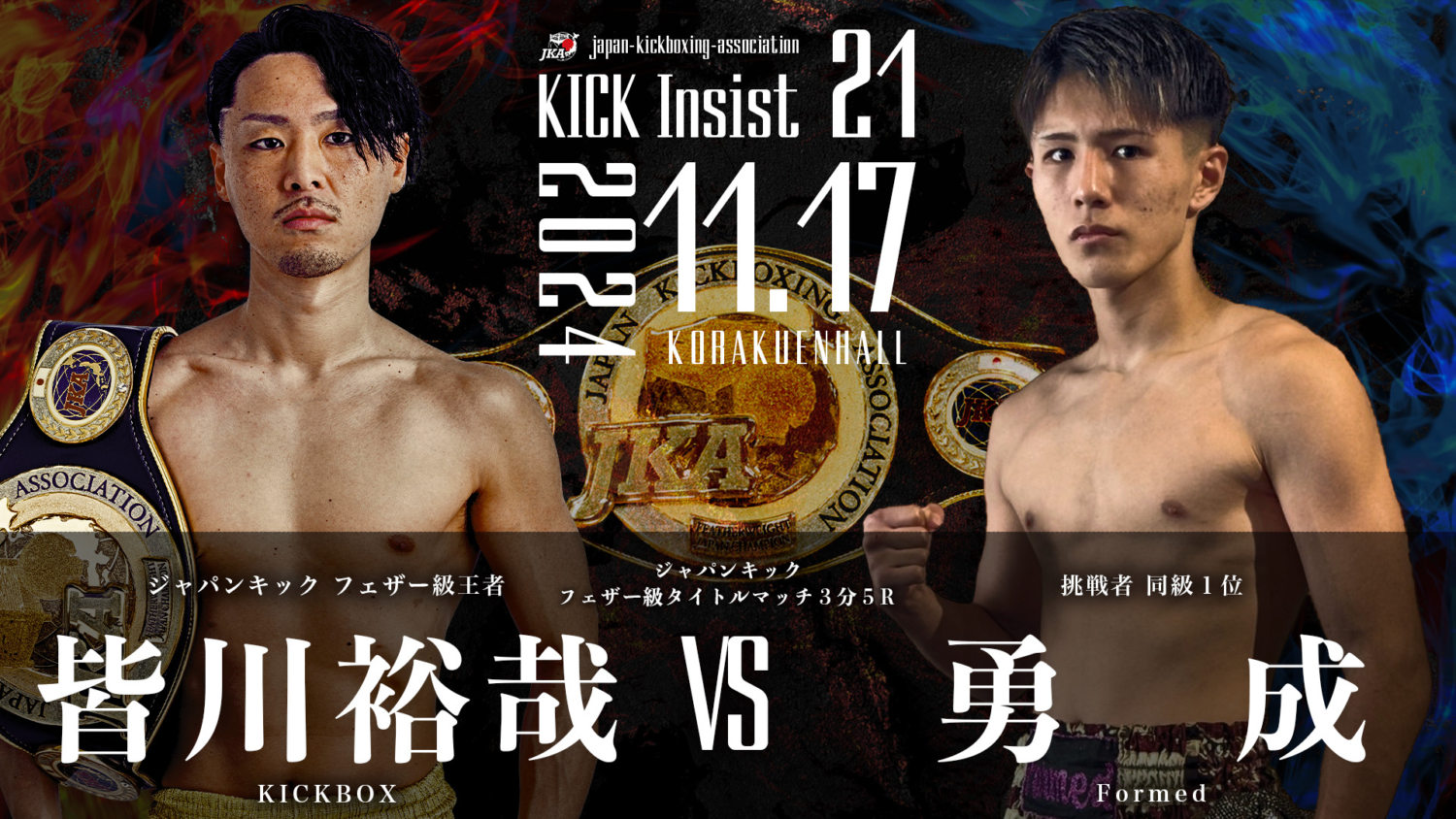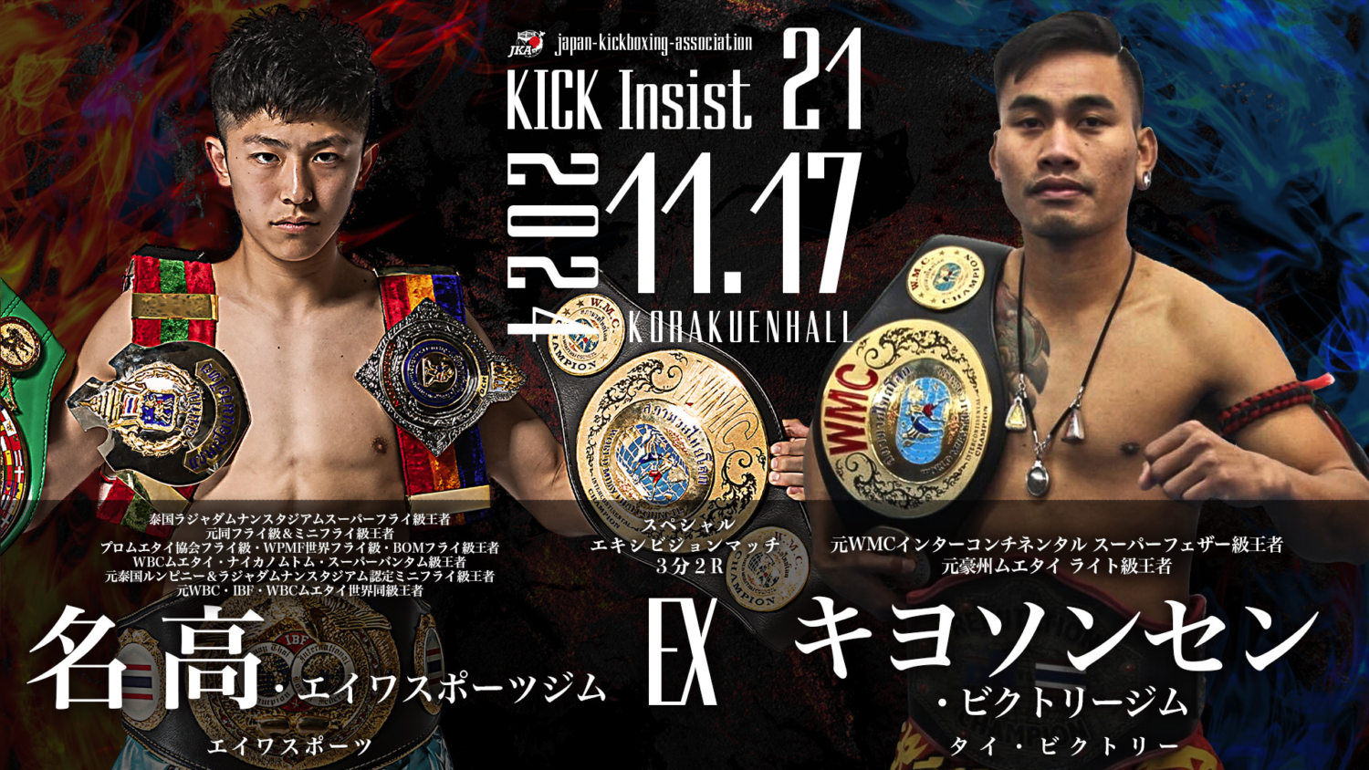 ジャパンキックボクシング協会 KICK Insist21(11月17日(日)後楽園ホール)の対戦カードが発表された。