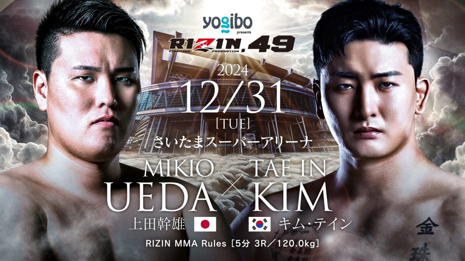 上田は29歳。19年に極真会館の世界大会で日本人として16年ぶりに世界王者になる。22年4月のRIZINでのMMAデビュー戦では髙阪剛にKO負け。12月のGRACHANでソン・ムジェを12秒左ハイでKOしMMA初勝利をあげると、昨年6月のRIZINでは関根“シュレック”秀樹を22秒左ハイでKO。9月のK-1ではキックボクシングに初挑戦しK-Jeeに2R KO勝ち。大晦日のRIZINではスダリオ剛を2R左ハイからのパウンドで仕留めた。だが今年6月大会ではシェミスラブ・コバルチェクに1R腕十字で一本負けした。