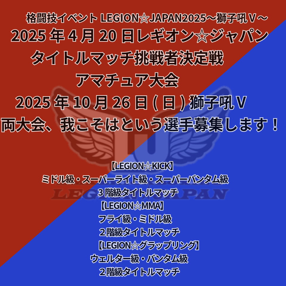 LEGION☆JAPAN 2025年 4.20 熊本、10.26 鹿児島大会 MMA キック グラップリング 出場者募集