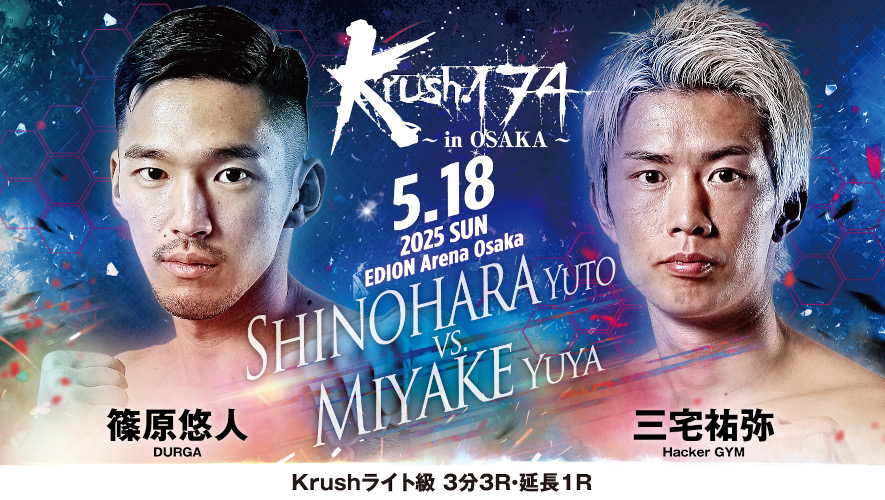 Krush.174(5月18日(日)エディオンアリーナ大阪第2競技場)の全カードが発表された。K-1の大阪大会は年1回ペースで開催されているが、Krushは2019年11月以来5年半ぶり2度めで、今回は昼夜大会として行われる。Krush.174は昼の部となる。