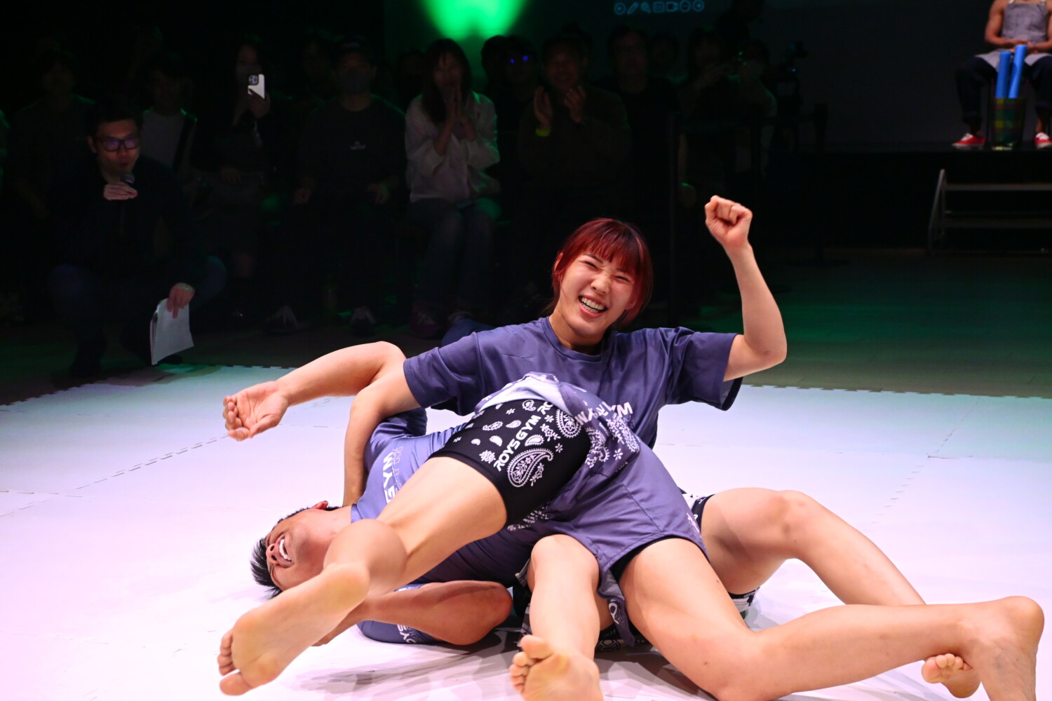 鹿志村はベースとする柔術主体のスパーリングを披露し、後藤は打撃を披露した後、グラウンドの展開で得意のツイスターを極めた。鹿志村は後藤のツイスターについて「とても素晴らしい技だと思うし、あれをMMAの試合で出せるっていう凄さは、普通にすごいなって思います」と評しつつ「僕には極まらないです」と断言した。後藤は鹿志村の寝技に関して「柔術に対してMMAグラップリングという形で対抗できるかなと思っています」と自信を示し「自分たちが作ってきたMMAでグラップラー攻略します」とも語った。