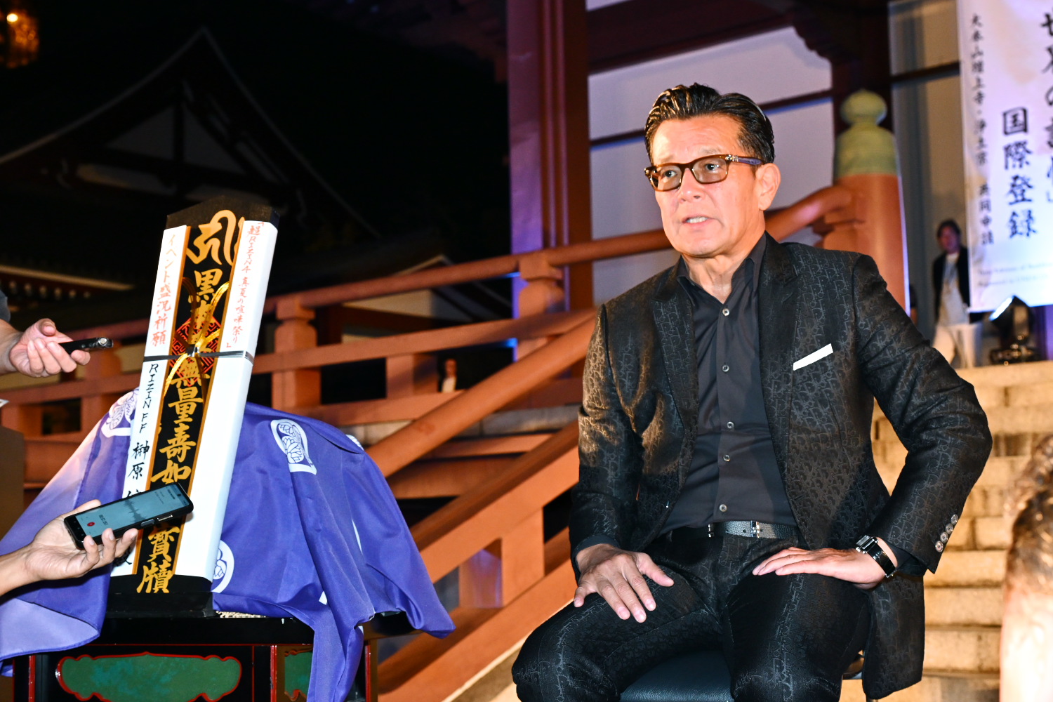 今回の会見場に増上寺を選んだ理由について榊原氏は「コロナ禍の時代、LANDMARKを開催するにあたって、富士山をバックにオープンエアの中でリングだけ組んで選手たちが上がって試合して配信するとか、そういう場所もいっぱいピックアップしてありました。増上寺さんもTBSさんが音楽イベントをここから中継を出したりしてて、そういう形で使う機会があることも知ってたんで、問い合わせたら7日だったら大丈夫だって言って、受けていただけました。勝ち運の神様なんで非常に縁起がいいというか、これも何かのご縁だなと思いました」と説明した。会見前には大会の成功を祈る祈祷も済ませ、榊原氏は札を横に置いて囲み取材に応じていた。