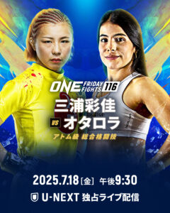 三浦は34歳。昨年1月の有明大会でストロー級からアトム級に階級を落とし、平田樹に判定勝ち。4月のアトム級での試合はジヒン・ラズワンの怪我により中止に。10月にラズワンとの試合が改めて組まれ、三浦は計量をクリアしたが、ラズワンの計量オーバーにより再び中止に。11月のONE 169ルンピニー大会ではアトム級でマカレナ・アラゴンに1R Vクロスアームロックで一本勝ちしランクイン。今年2月のカタールでのONE 171に参戦すると、リトゥ・フォガットに1R膝十字で一本勝ち。2試合連続で5万ドル(約750万円)のボーナスを獲得している。