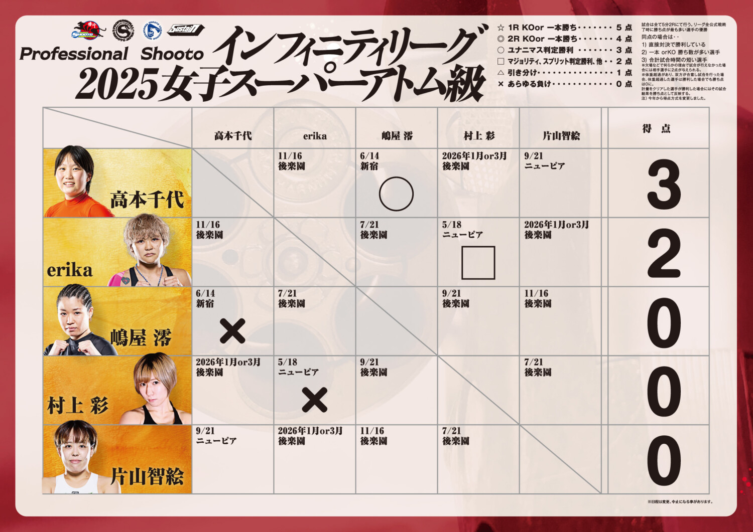 修斗インフィニティリーグ、計量オーバーの相手に勝利した選手も通常通りの勝ち点獲得にルール変更。1R勝利の黒部和沙の勝ち点は2から5に