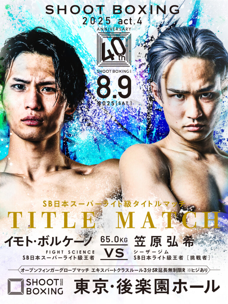 シュートボクシング 8.9 後楽園ホール:イモト×笠原弘希は王座戦史上初の肘有りOFGマッチに。両選手インタビューも届く|山田虎矢太と安本晴翔の相手のタイ人選手変更