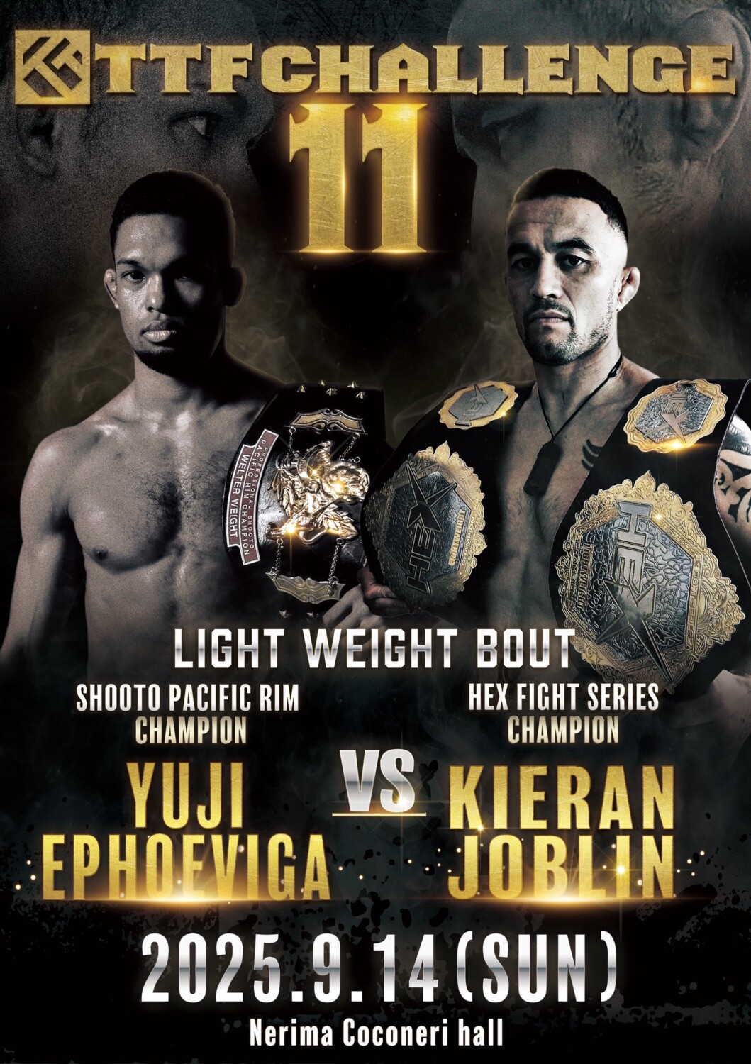 TTF CHALLENGE 9.14 練馬Coconeriホール:エフェヴィガに続き石井逸人&阿部光太もオセアニア勢と対戦。石井はバンタムとフェザーの間の64kg契約戦に。全カード揃う