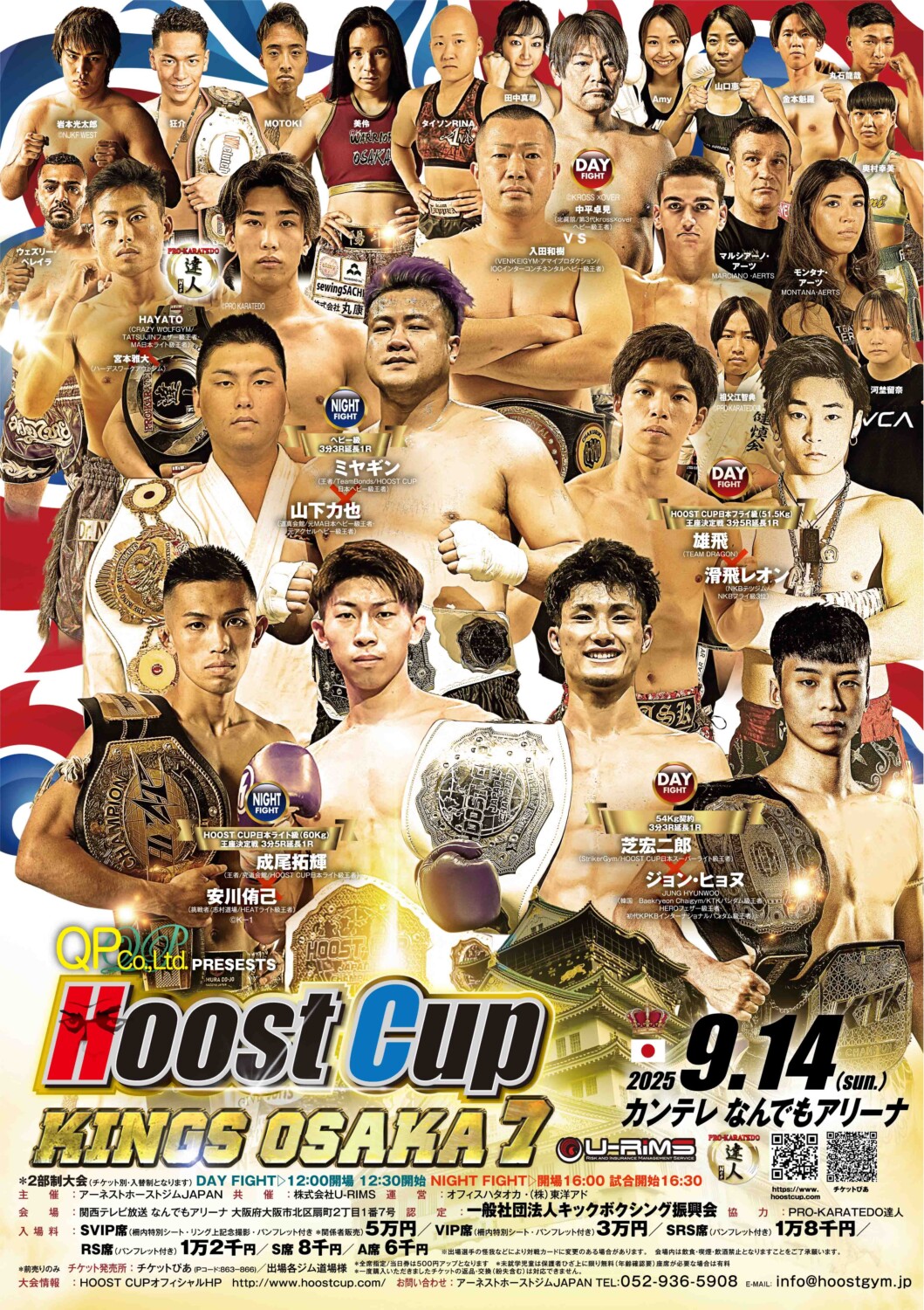 HOOST CUP KINGS OSAKA 7 ~BURNNING ! OSAKA~(9月14日(日)大阪・関西テレビなんでもアリーナ)の追加カードが発表された。主催者から各試合の見所紹介も届いている。