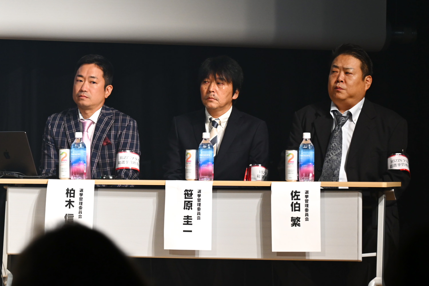 ネットでのファン投票を行わず投票者を限定したことについて、榊原氏は「RIZINを愛し、格闘技を愛し、格闘技で何を伝えたいかというRIZINのポリシーも理解している人たちによってマッチアップはされるべきです。広くみんなに投票権を与えることで、誰かが『この人に一票入れて』って言って、ダーッと票が入ってコントロールつかなくなり、本当に見たいと思ってくれているコアなファンの人たちの見たいものと違うものになっていくことも懸念し、今回はこういう形でやらせていただきました」と説明した。投票システムは当日イベント開始後に初めて明かされため、事前にシステムに合わせた選挙運動をできないようにしたことも効果的だったようだ。