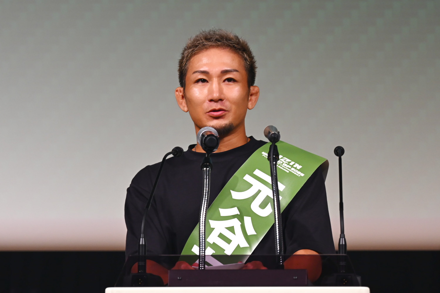◆伊藤「“しょっぱい想いはさせない糖”の伊藤裕樹です。9月28日に僕の地元名古屋でRIZIN.51が開催されます。この地でフライ級の未来を切り開くために、今日まで全力で選挙活動をしてきました。最初はあいつは選挙のために媚を売っている落ちろ、しょっぱい試合してるから落選しろ、そんな思いも正直ありました。でも今は違います。誰かが落ちろ、というよりも僕が準決勝に純粋に進んで勝ちたいという気持ちが強くなっています。候補者の中で正直に言えば圧倒的に実力不足かもしれません。だけど誰かに限界や不可能を決められるために格闘技をやっていません。誰よりも熱く、誰よりもこの2000万円…、間違えました、RIZINフライ級のベルトのために情熱を注いでいます。もし僕が優勝できたあかつきには、RIZINフライ級が世界一と呼ばれるようになりたい、それが今の目標と夢です。準決勝は誰が立ちはだかろうと構いません。9月28日、IGアリーナを一番盛り上げる自信があります。そして決勝戦、5月に敗れた神龍誠にリベンジしてチャンピオンになりたいと思います。」