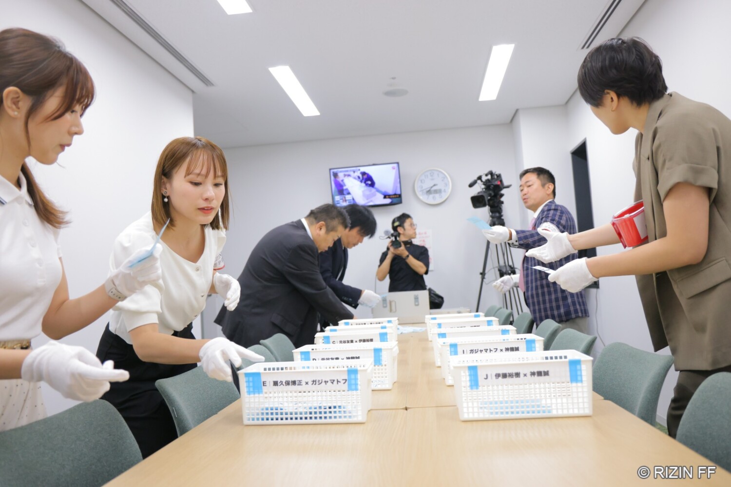 会場には選挙ポスターが貼られ、1回目の投票前には5選手による演説の機会が設けられ(制限時間は日本勢が3分、ガジャマトフは通訳が入るため5分)、実際の政治の世界の選挙と同じような投票用紙、投票箱も用意され、演説時のスクリーンの文字も政見放送のようなフォントを採用し、ディテールにこだわった演出が施された。「RIZIN FF選挙管理委員会」を広報の笹原圭一氏、マッチメイカーの柏木信吾氏、DEEPの佐伯繁代表の3人が務め、RIZINのスタッフも手伝い、開票作業が行われた。