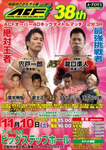 ACF 11.10 大阪 ビックステップホール:宍戸一郎×瀧口準人、オーバー40キックタイトルマッチほか決定