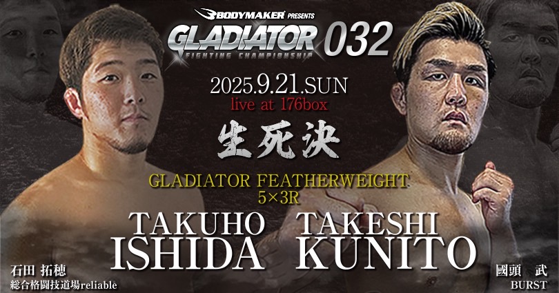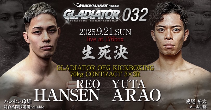 9月21日(日)に大阪府豊中市176BOXで開催いたします「GLADIATOR 032」対戦カードを発表させていただきます。6月8日に行われた「GLADIATOR 031」以来、3カ月ぶりの大会です。