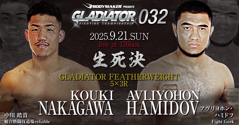 GLADIATOR 9.21 大阪 176BOX:神戸Reliable所属の中川晧貴、ウズベキスタンの選手と対戦「勝ち方にこだわって11月のRIZINに向けアピールしたい」