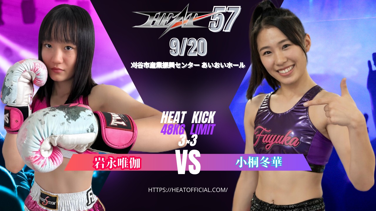 キックルール女子48kg契約では、RISEを主戦場とする18歳の岩永唯伽(OISHI GYM) と、シュートボクシング協会に所属する19歳の小桐冬華(TEAM FOREST)の新鋭対決が決まっている。