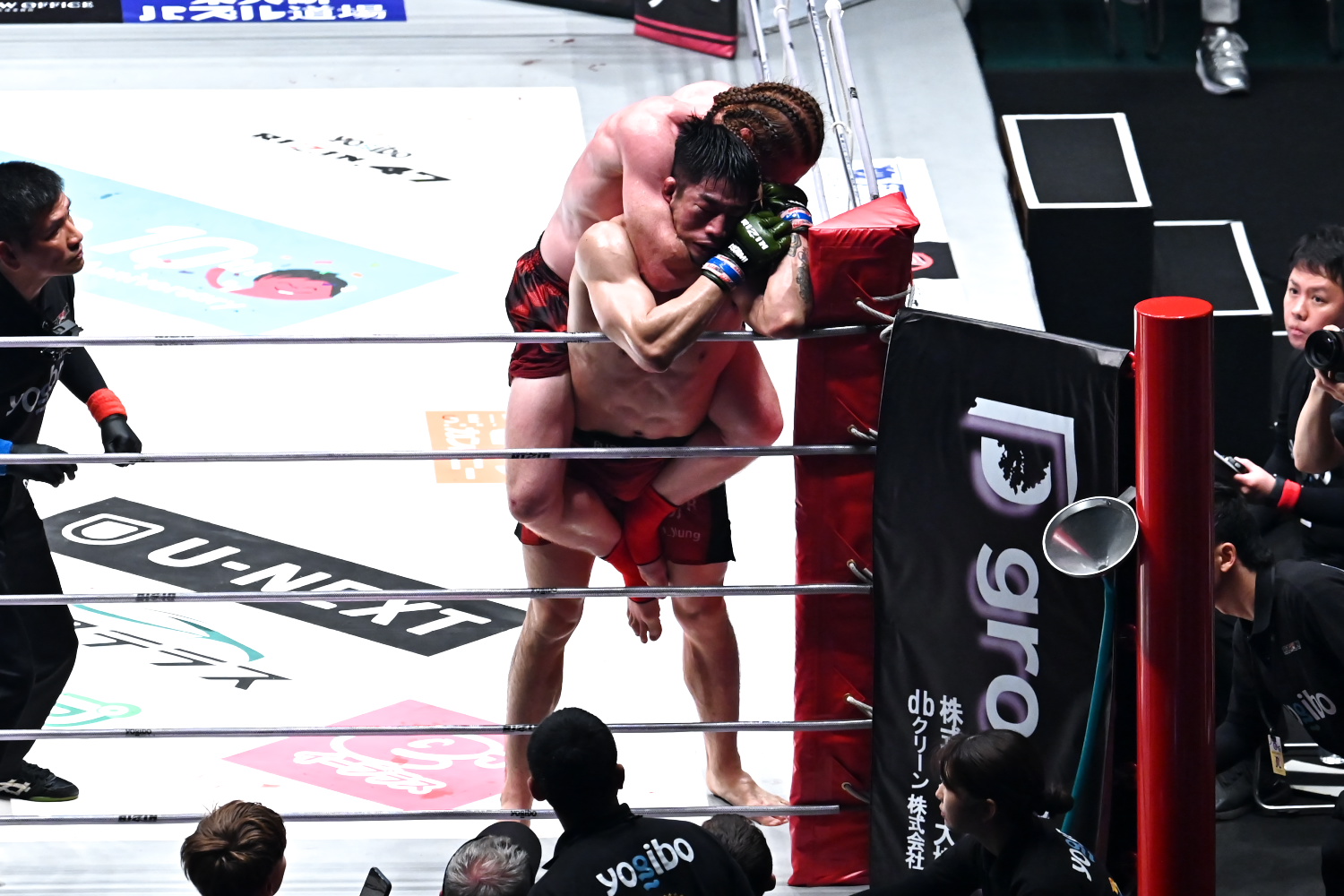 (カーライル選手のグラップリングへの印象と、自身の柔道でどう対抗するか?)確かに、やばいレベルのグラップリングだと思うんですけども、自分も柔道を出せれば全然対抗できると思うので、際のところとかでも自分から取っていければ全然できるかなと思います。