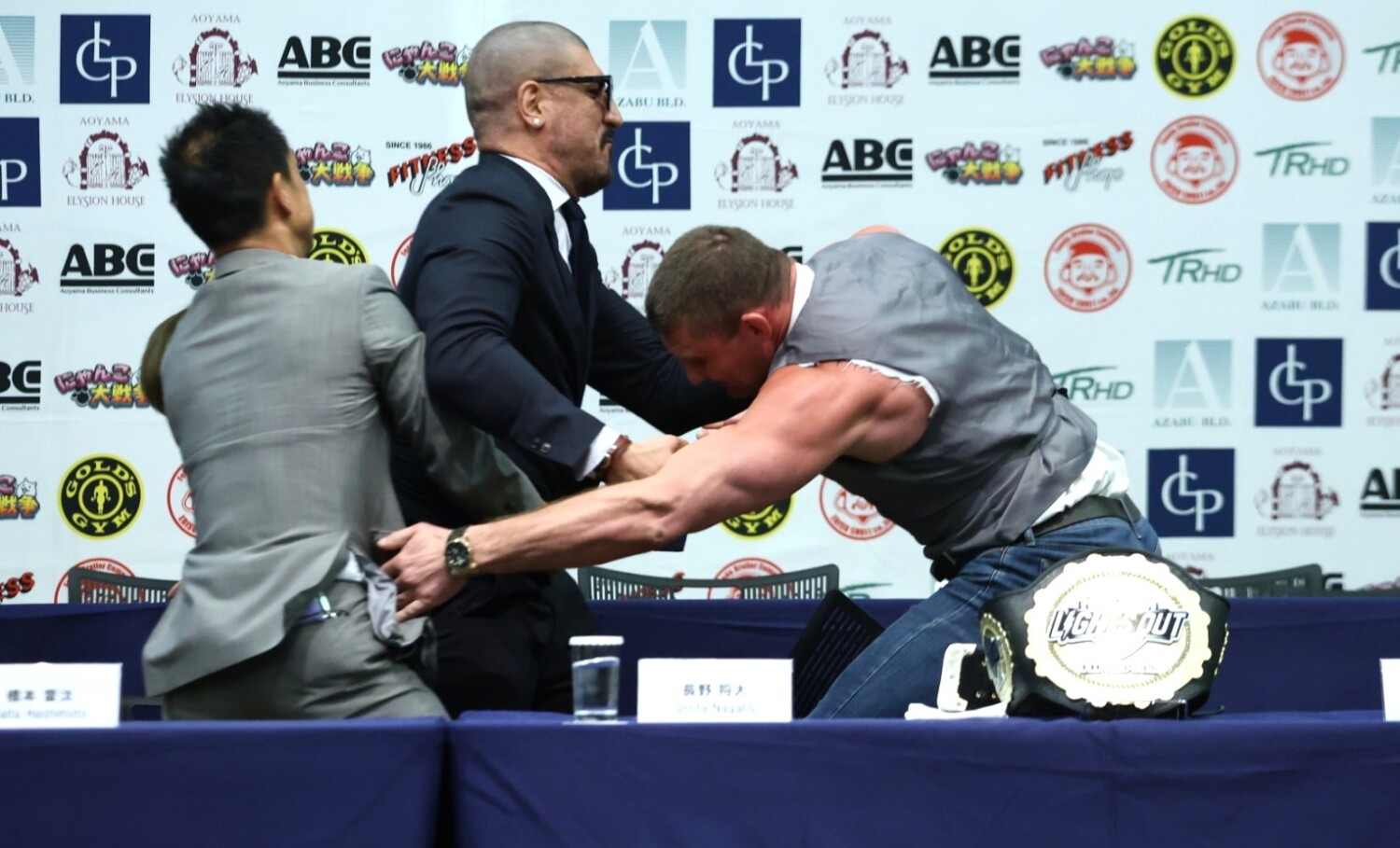 計量前から、シナ・カリミアン(イラン)とブレイク・トループ(アメリカ)が挑発合戦をして掴み合うなど小競り合いが起こっていた。そして、最悪の展開に。計量後の会見でトループが意気込みを語ると、カリミアンが反論。その繰り返しとなり、トループがカリミアンに対して辛辣な発言をすると最悪の事態へと発展した。