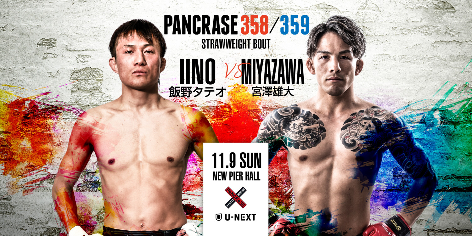 PANCRASE 358/359(11月9日(日) 東京・ニューピアホール)の決定カードが発表された。7月の立川大会で3Rバッティングによるノーコンテストとなったフライ級王者決定戦・濱田巧 vs. 大塚智貴の再戦が行われる。フェザー級では2連敗中の平田直樹が、井村塁・ISAOを1R1分台にKOしてきたキルギスの剛腕・カリベク・アルジクル・ウルルと対戦する。